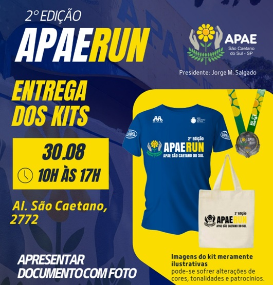 A APAE São Caetano do Sul realiza neste domingo (31) a partir das 7h, a 2ª edição da corrida de rua APAE RUN.