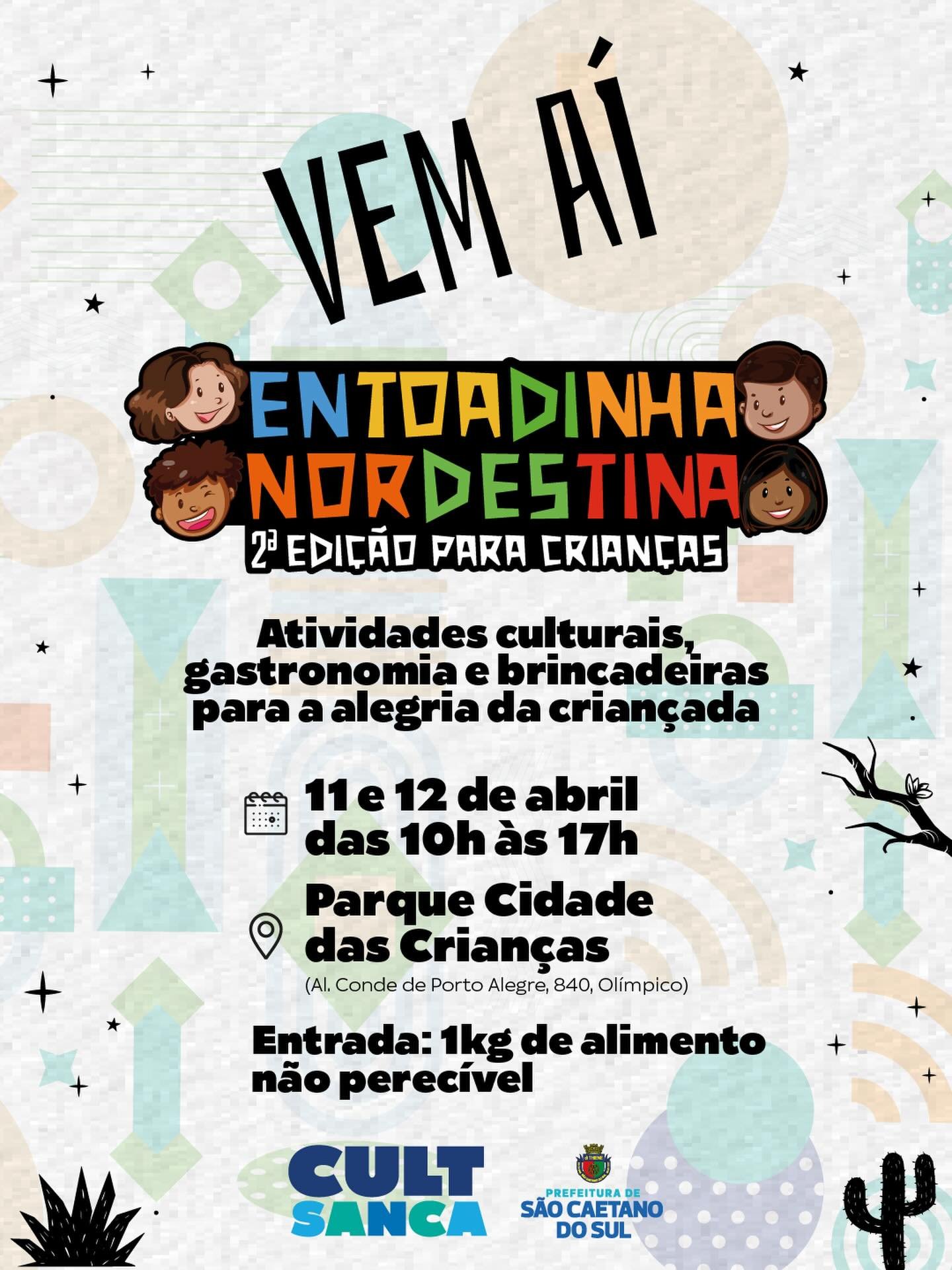 A Entoadinha Nordestina 2ª Edição acontece nos dias 11 e 12 de abril, sábado e domingo, das 10h às 17h, no Parque Cidade das Crianças (Alameda Conde de Porto Alegre, 840, bairro Santa Maria) com muitas atrações culturais e gastronômicas.