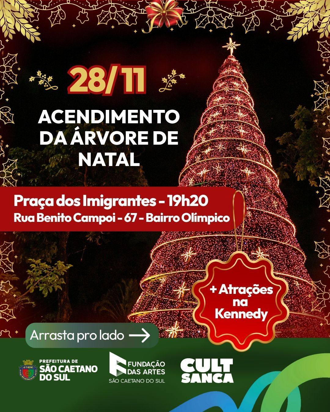 O início da Programação Especial de Natal em São Caetano do Sul será nesta sexta-feira (28/11) com a inauguração e acendimento da Árvore de Natal e a chegada do Papai Noel, a partir das 19h.