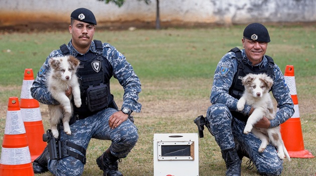 Aslan e Aegon, de apenas 70 dias de vida, são Border Collies e estão em treinamento para reforçar a inspetoria e auxiliar nas operações, patrulhamento e até mesmo no fortalecimento dos vínculos da corporação com a comunidade.