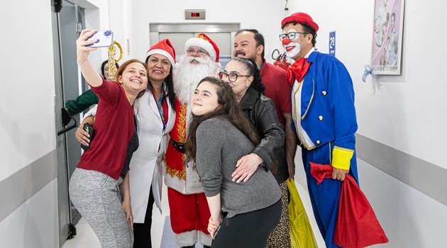Pacientes do Complexo Hospitalar de São Caetano do Sul (formado pelos hospitais Márcia Braido, Maria Braido e Euryclides de Jesus Zerbini) receberam uma visita especial na tarde desta quinta-feira (18/12): a do Papai Noel e de palhaço integrante do Grupo Doses de Alegria, que utiliza a linguagem clownesca para realizar ações humanizadoras, espalhando amor, fé e, claro, alegria.